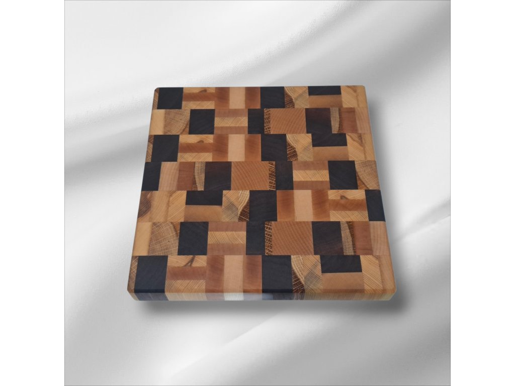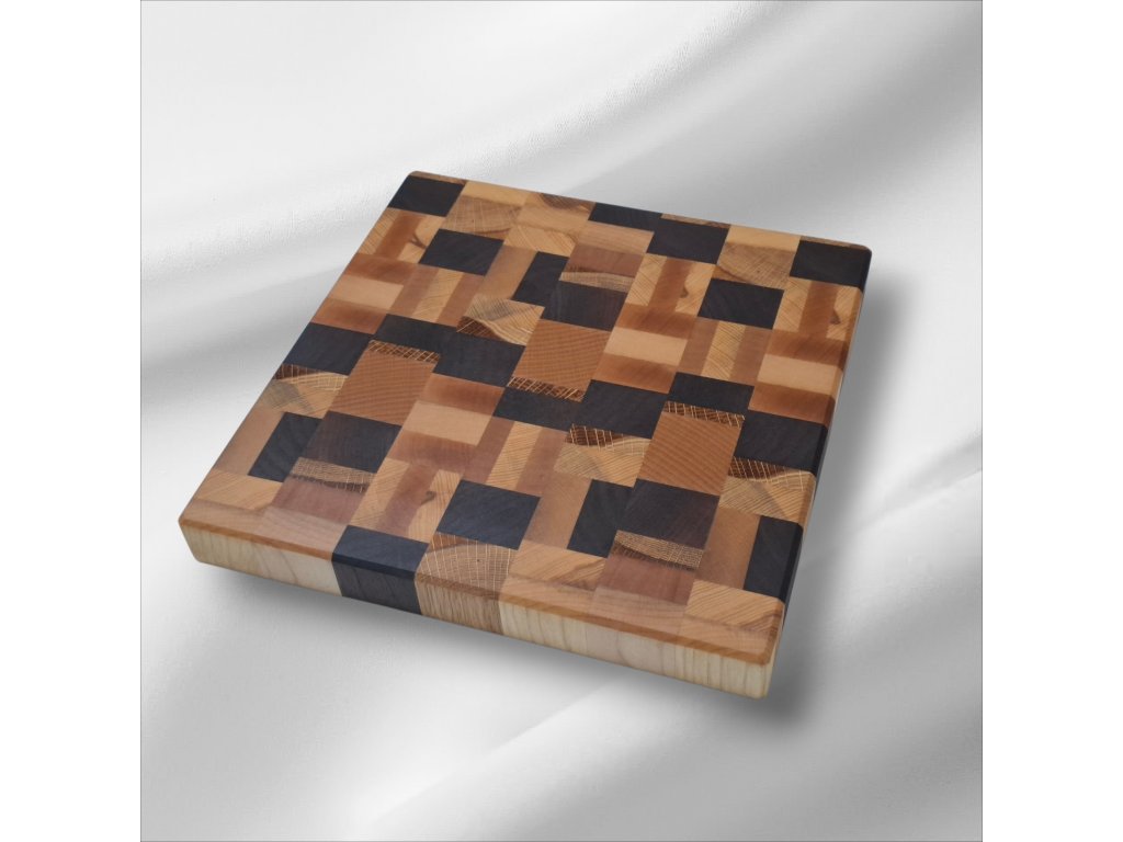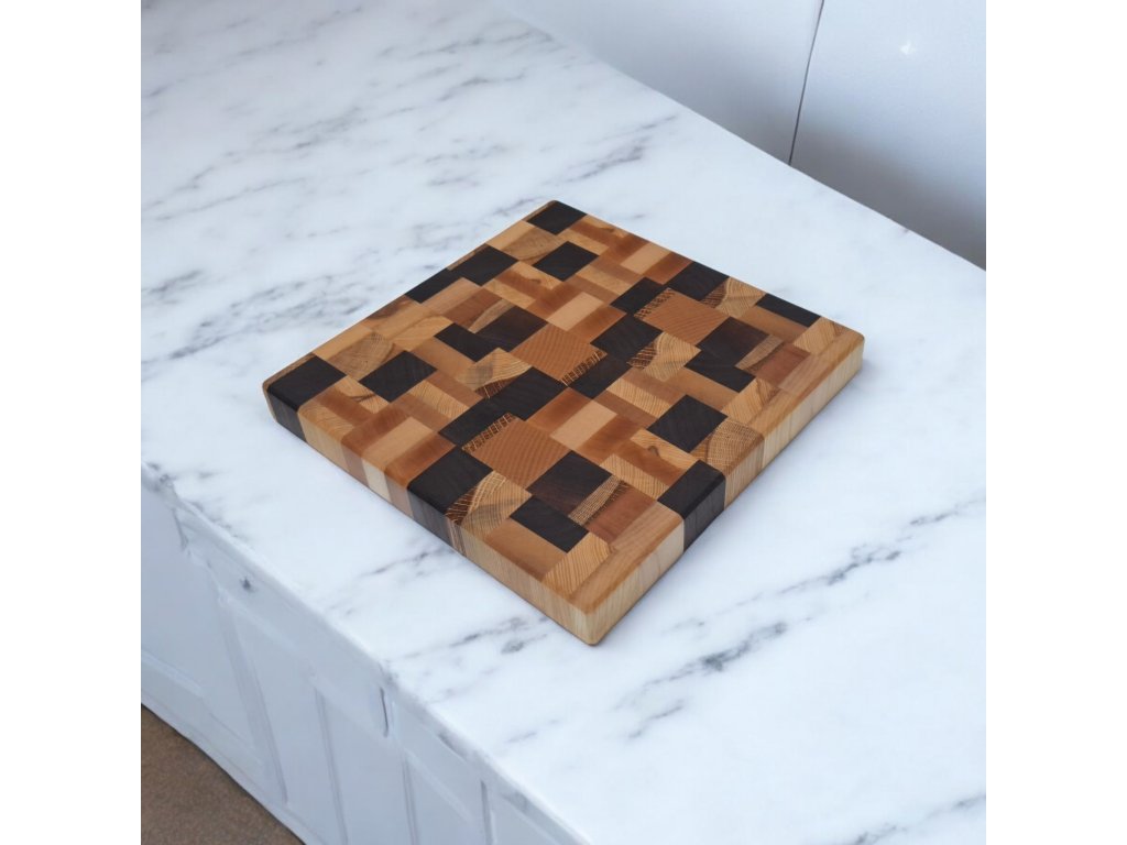 Prémiové end-grain krájecí prkénko vyrobené z pečlivě vybraného mixu tvrdých dřevin: amerického ořechu, buku, dubu, jasanu a třešně. Každý kus je originál díky jedinečné mozaice koncových vláken, která nejen skvěle vypadá, ale zároveň poskytuje výjimečné funkční vlastnosti.