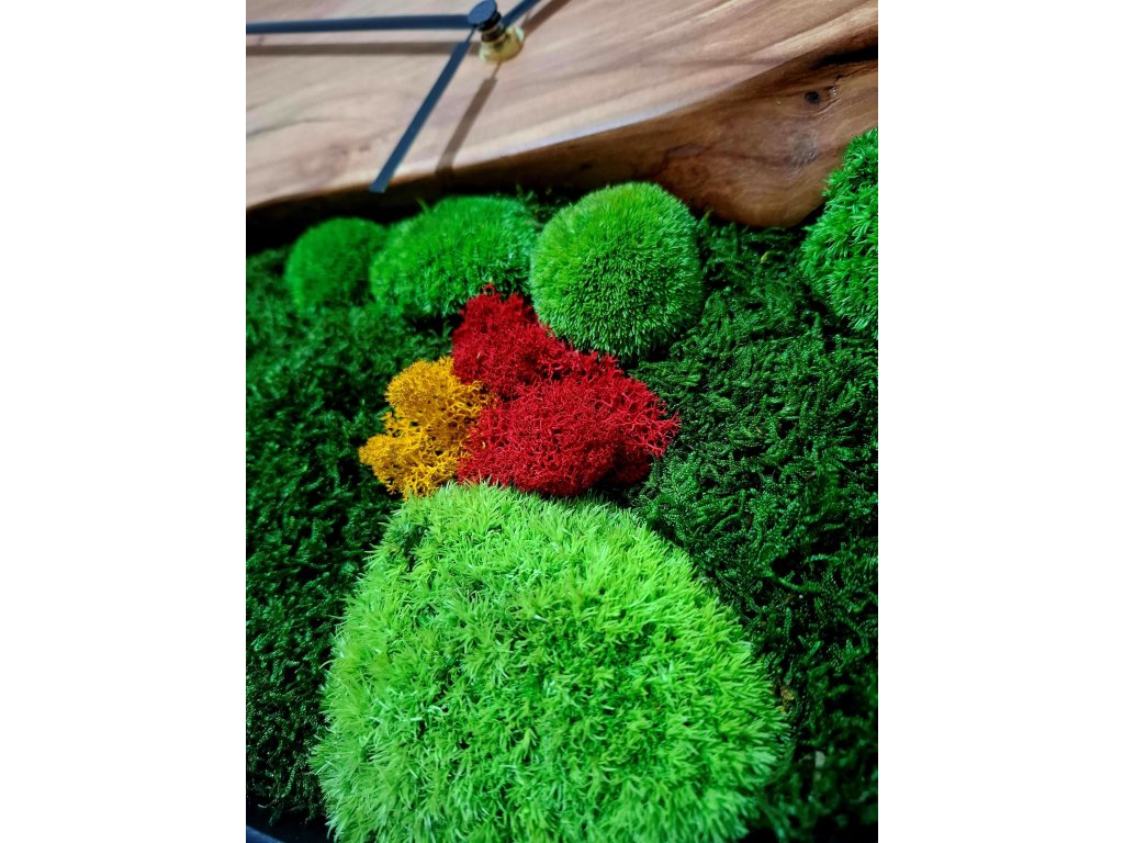 - Materiál: třešňové dřevo, kov, stabilizovaný mech