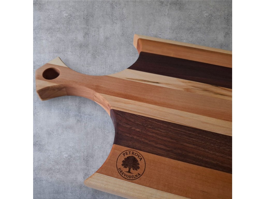 Servírovací a krájecí deska s rukojetí – ořech, javor, švestka