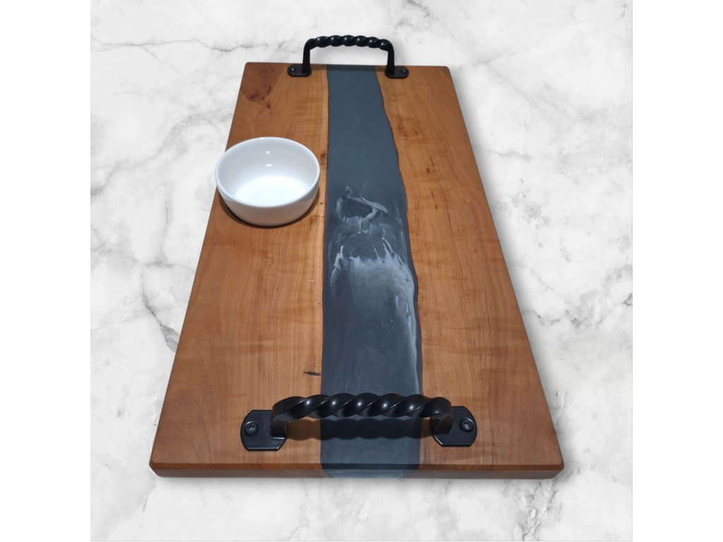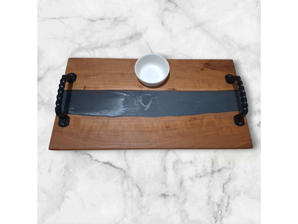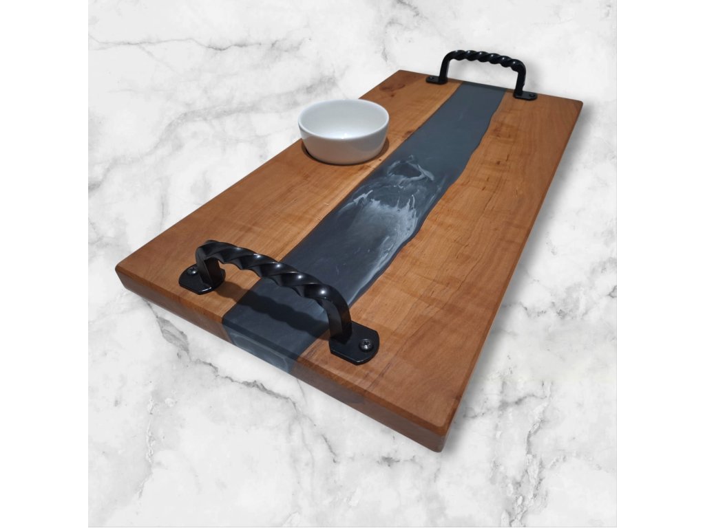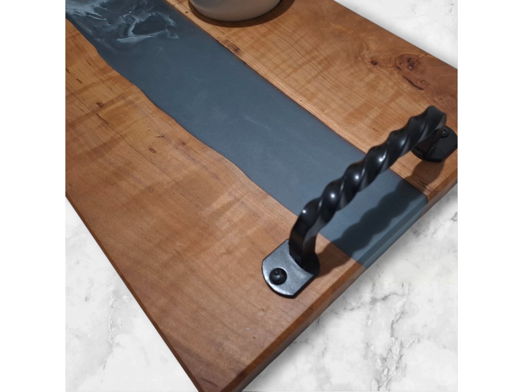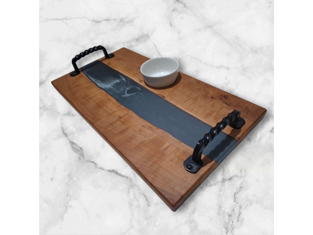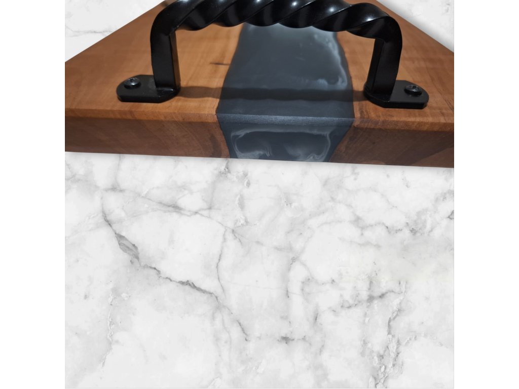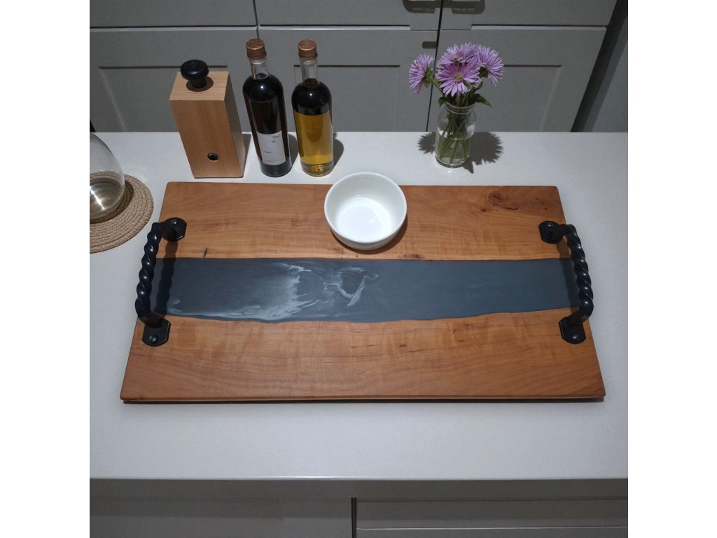 Tento servírovací podnos je vyroben je z masivního třešňového dřeva, jehož krásná kresba a teplý odstín dodávají každému kusu osobitý charakter. Střed podnosu zdobí šedobílý epoxid, který vytváří elegantní kontrast s přírodním dřevem a zároveň podtrhuje moderní vzhled celého výrobku.