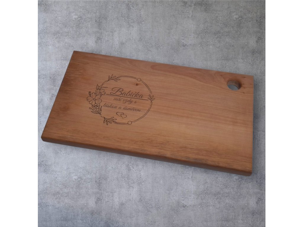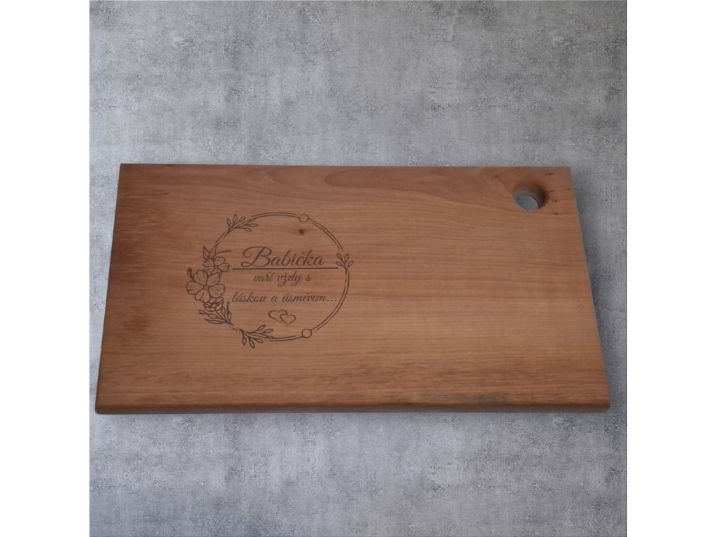 Elegantní servírovací prkénko vyrobené ze švestkového dřeva, které se vyznačuje zajímavou kresbou a vysokou odolností. Díky preciznímu laserovému gravírování s jemným motivem a textem je prkénko nejen praktickým, ale i krásným dárkem pro milovanou osobu.
