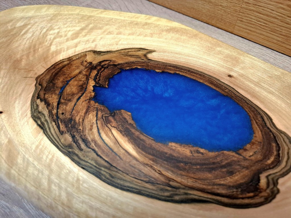 - Modrá epoxidová pryskyřice – jedinečný design, každý kus originál