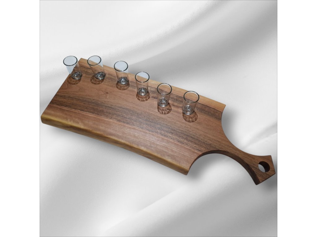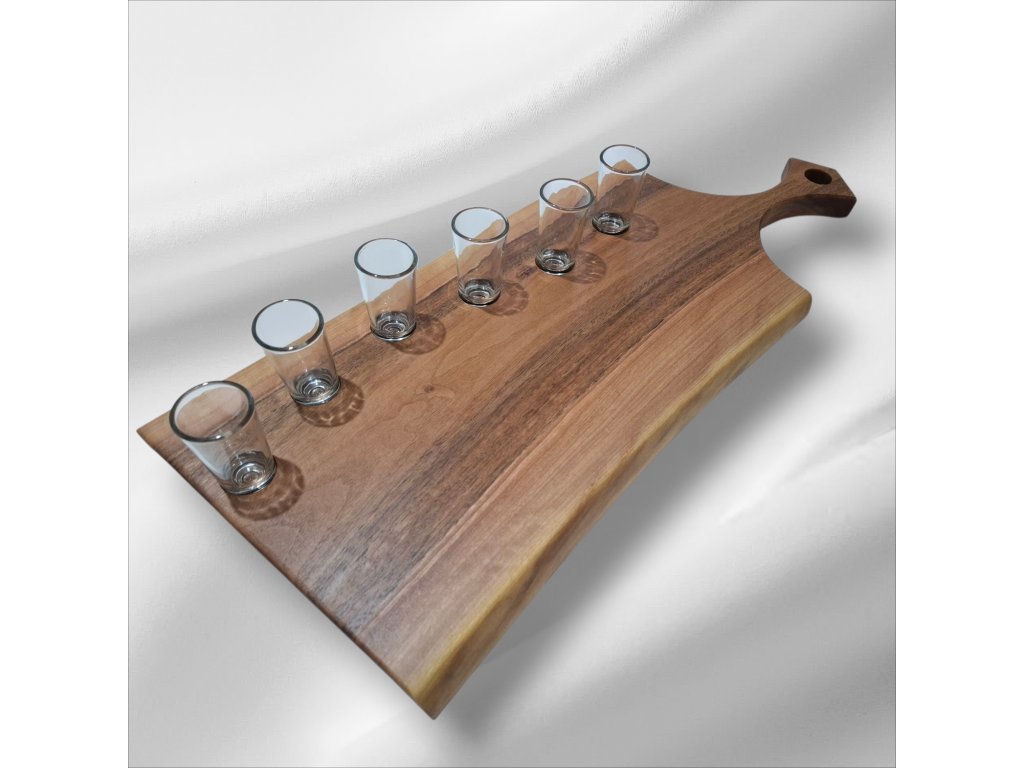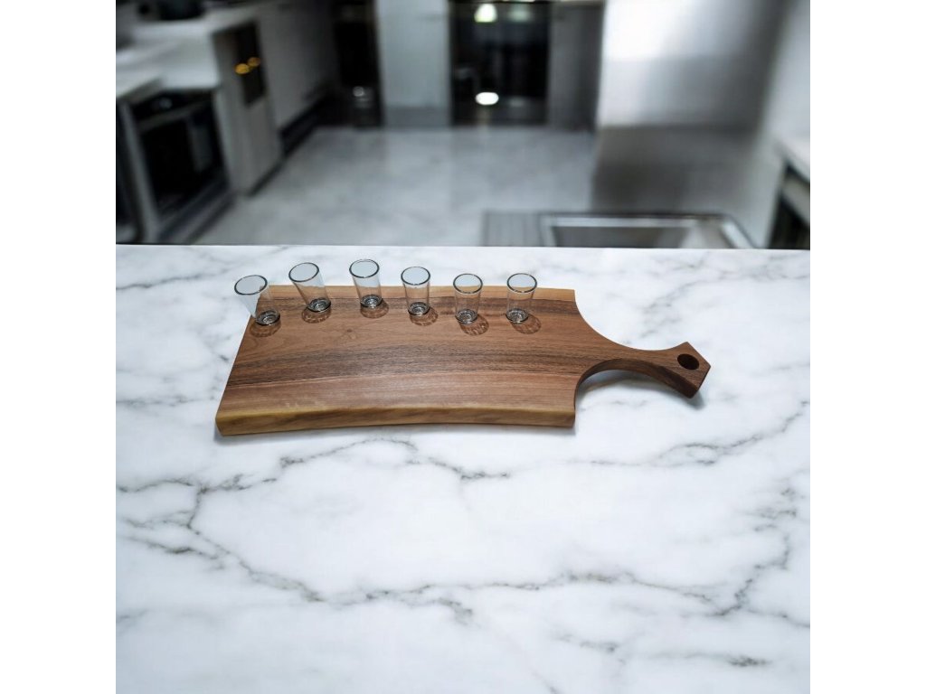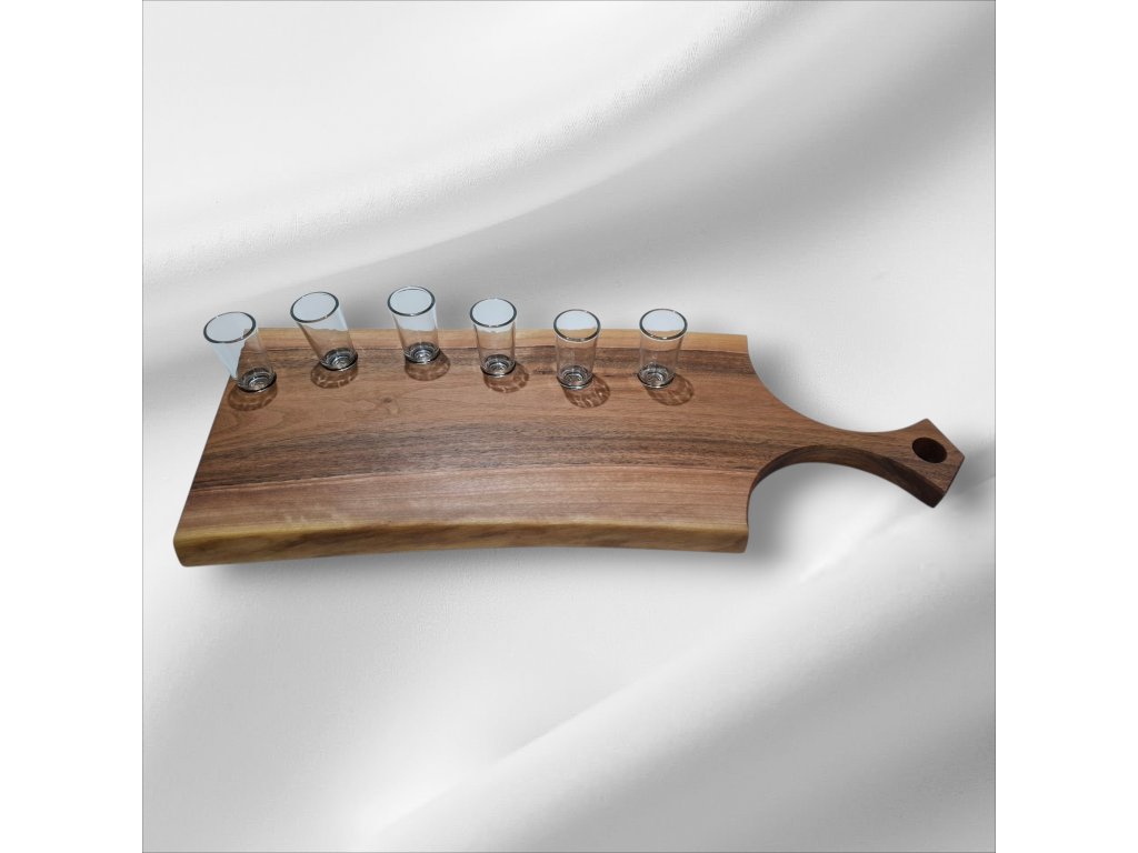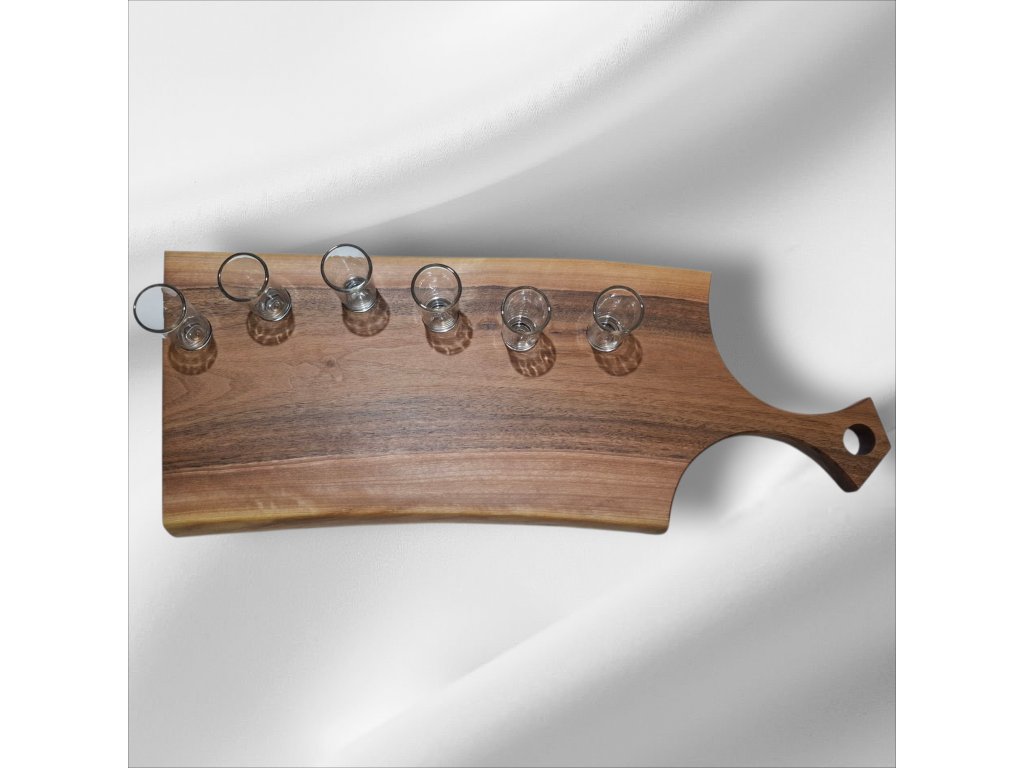 Elegantní servírovací prkénko z poctivého, masivního ořechového dřeva je ideální pro stylové podávání vašich oblíbených pochoutek a nápojů. Prkénko má vyfrézované otvory pro 6 skleniček, které umožňují snadnou a bezpečnou manipulaci při servírování. Skleničky jsou součástí balení, takže ihned po rozbalení můžete prkénko začít používat.