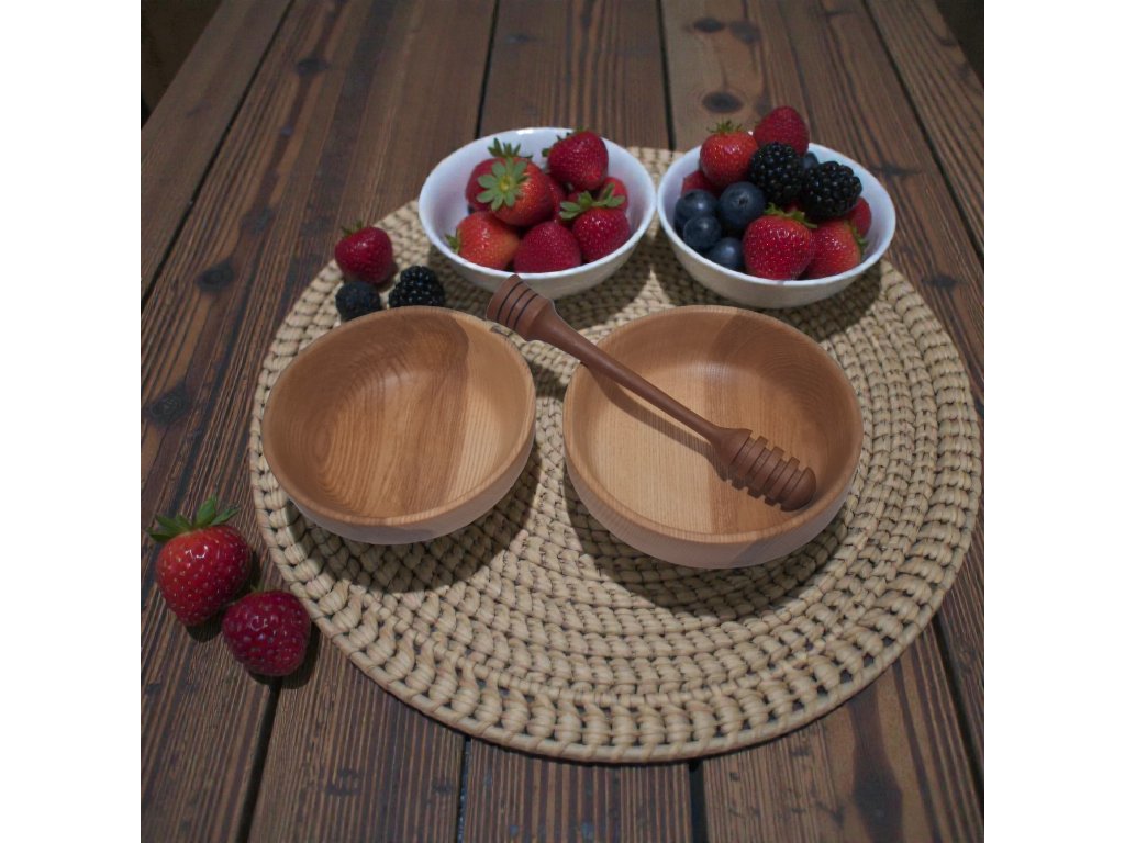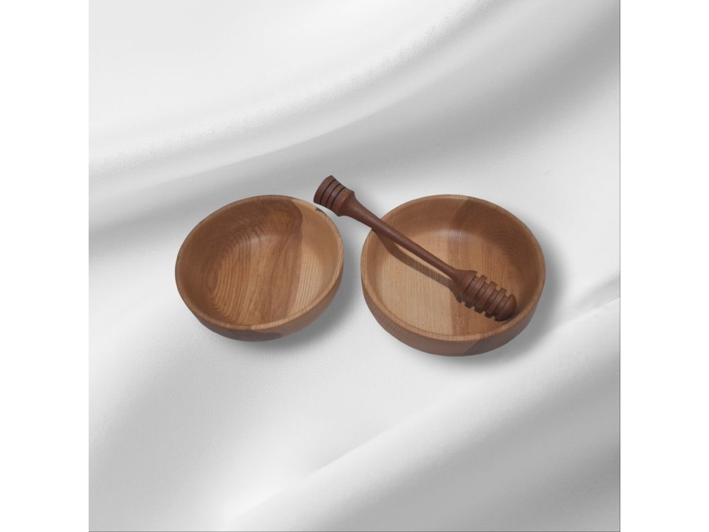 Stylová sada dvou ručně zpracovaných misek z kvalitního jasanového dřeva potěší milovníky přírodních materiálů i poctivého řemesla. Každá miska má jemně kreslenou strukturu dřeva a příjemný tvar, který se hodí do moderní i rustikální kuchyně. Součástí balení je lžička na med z třešňového dřeva, která krásně doplňuje přírodní charakter misek a dělá ze sady perfektní dárek.,